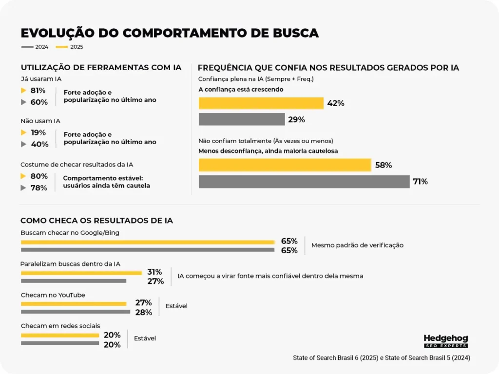 Se 81% dos usuários já utilizaram IA, mas 93% não confiam completamente, isso claramente mostra um grande espaço para um velho conhecido: o SEO.